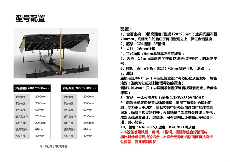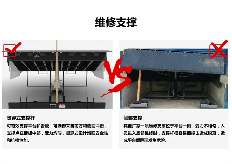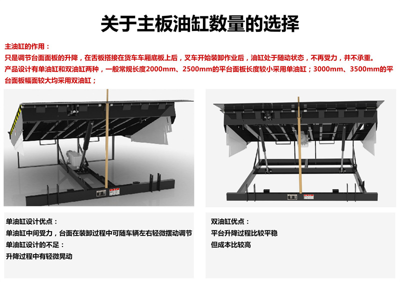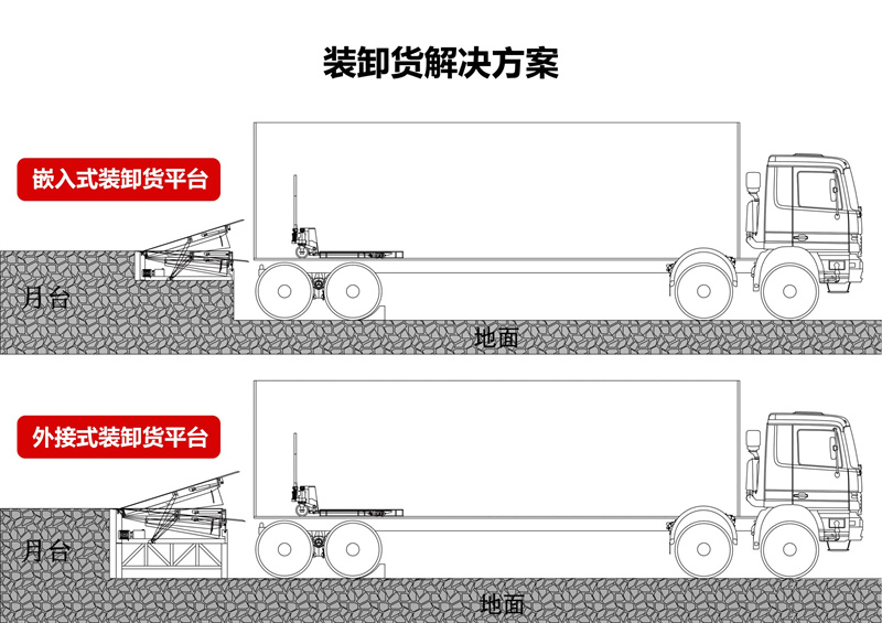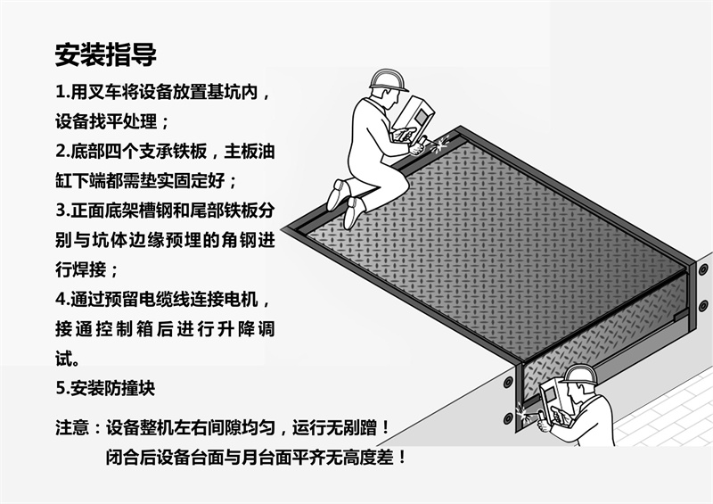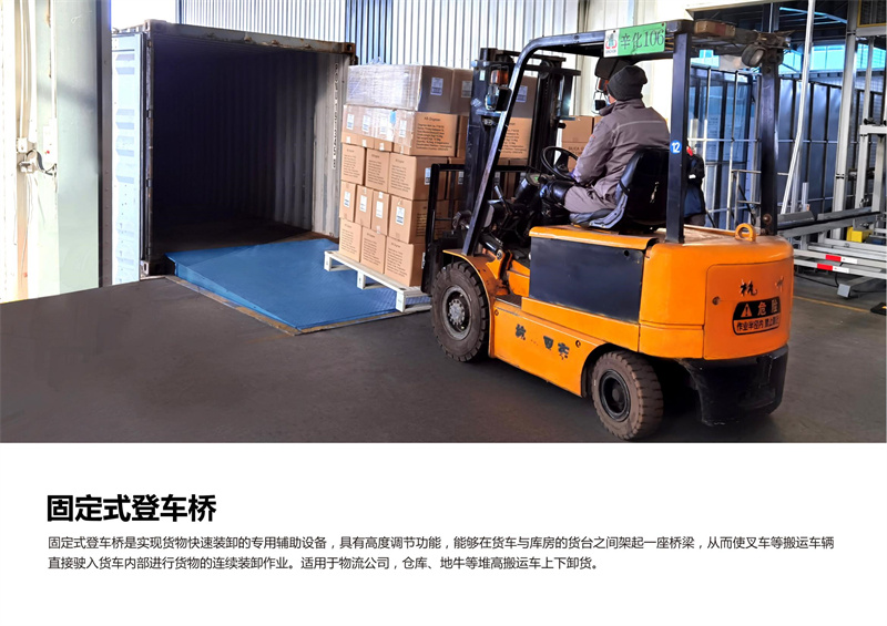 固定式登車橋電動液壓高度可任意調節 ,提高裝卸效率的液壓固定式登車橋,采用全液壓驅動,操作方便運行可靠。唇板與平臺采用整長軸連接,強度高、可靠性好。用進口整體模塊式液壓站,密封性好,使用壽命長。